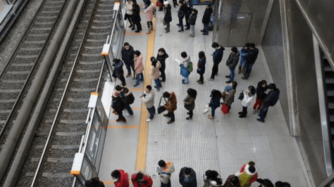 Luôn đứng phía sau vạch vàng để đảm bảo an toàn – đây là quy tắc tuyệt đối.
